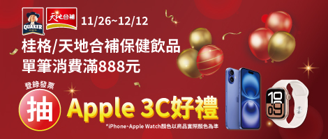 活動期間內於指定通路購買桂格/天地合補保健飲品(不含完膳),單筆消費滿$699,上網登錄發票等購買資訊...